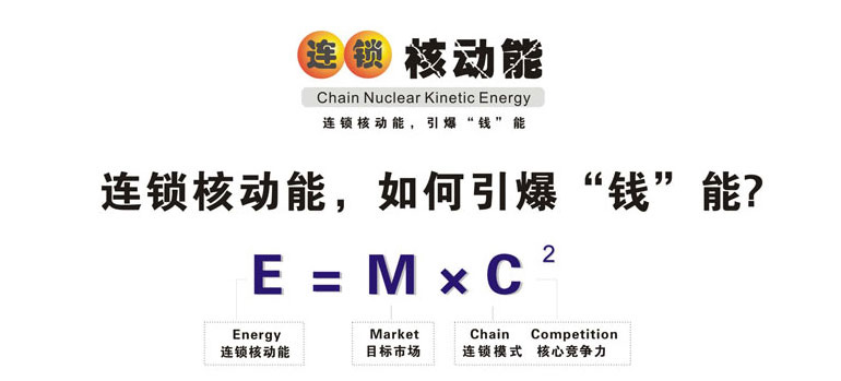 • 廣州采納企業(yè)管理顧問有限公司陳宏創(chuàng)建的連鎖核動能理論 以愛因斯坦的能量公式為基礎創(chuàng)建,其理論意義是: 企業(yè)找準了目標市場,以連鎖的方式經(jīng)營,核心競爭力越大, 推動其發(fā)展能量就越大。